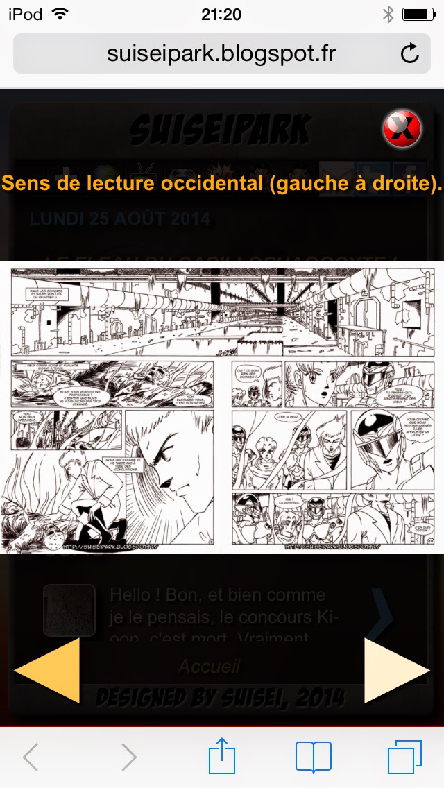 J'ai développé et intégré un système de lecture de BD pour le blog (et aussi pour ma page tumblr tant qu'à faire). Il est simple et se déclenche quand vous cliquez sur le bouton de lecture d'une BD proposée sur le blog. Vous pouvez le tester en cliquant sur le lien de lecture de la vieille version de Necrotech dans le menu à droite (que j'ai rescannée et dont j'ai retapé le texte proprement). La navigation peut se faire à la souris ou au clavier et vous pouvez zoomer à la molette.